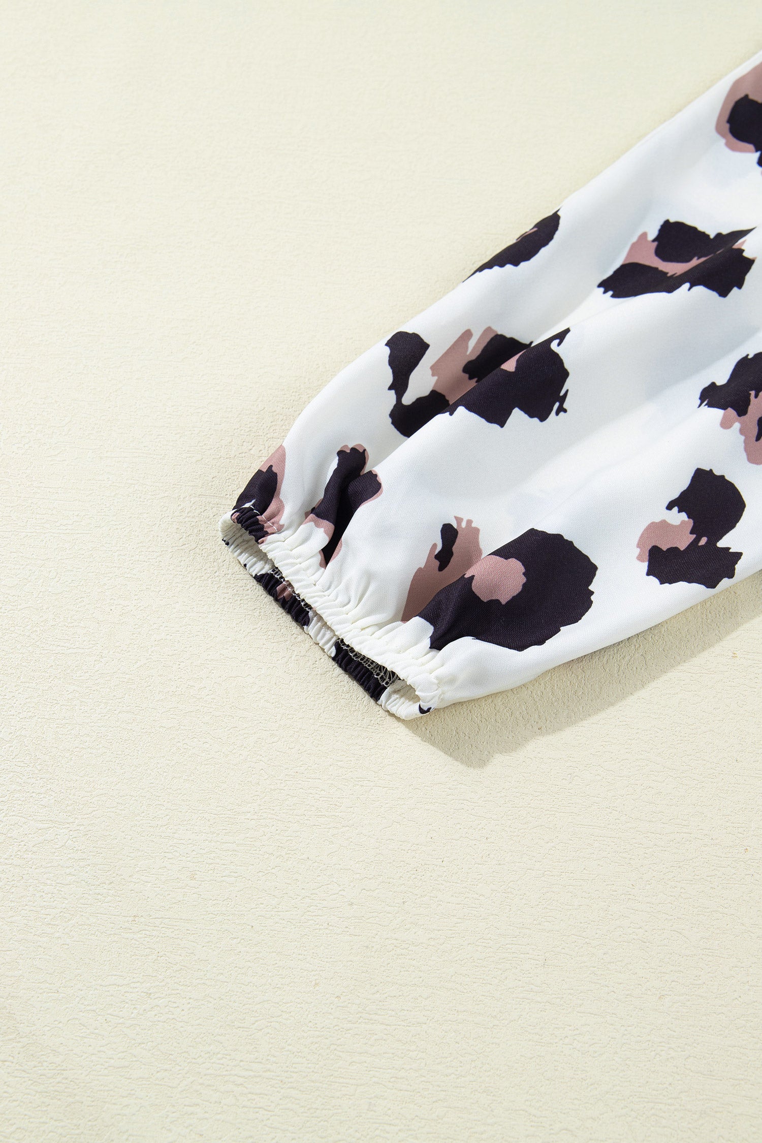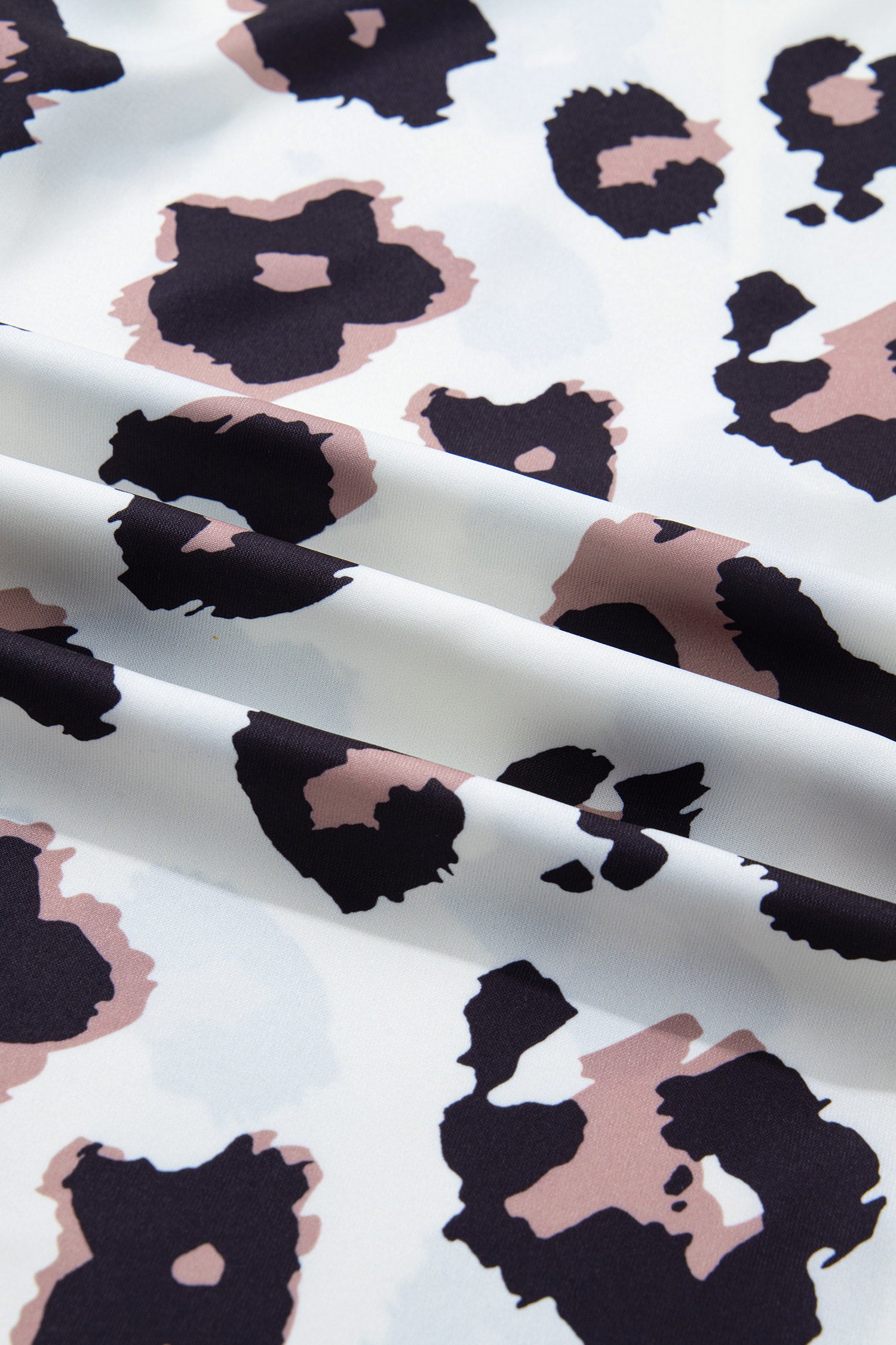 Khaki Leopard Print Contrast V Neck Plus Size Shift Mini Dress
