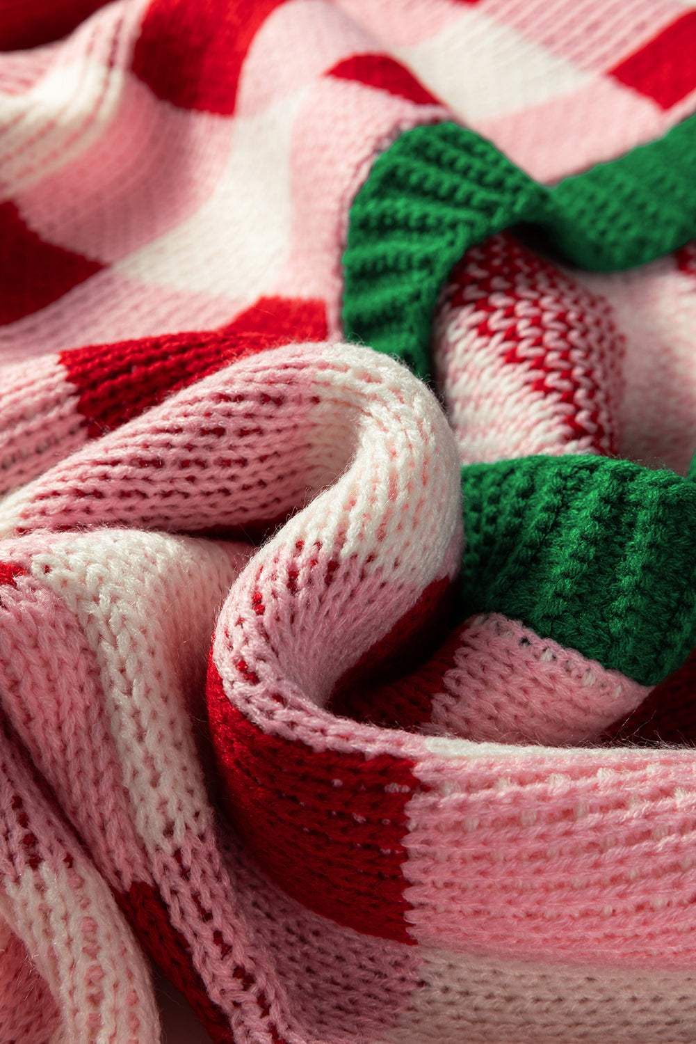 Pink Plaid Knit Bow Knot Decor Open Front Sweater Cardigan
