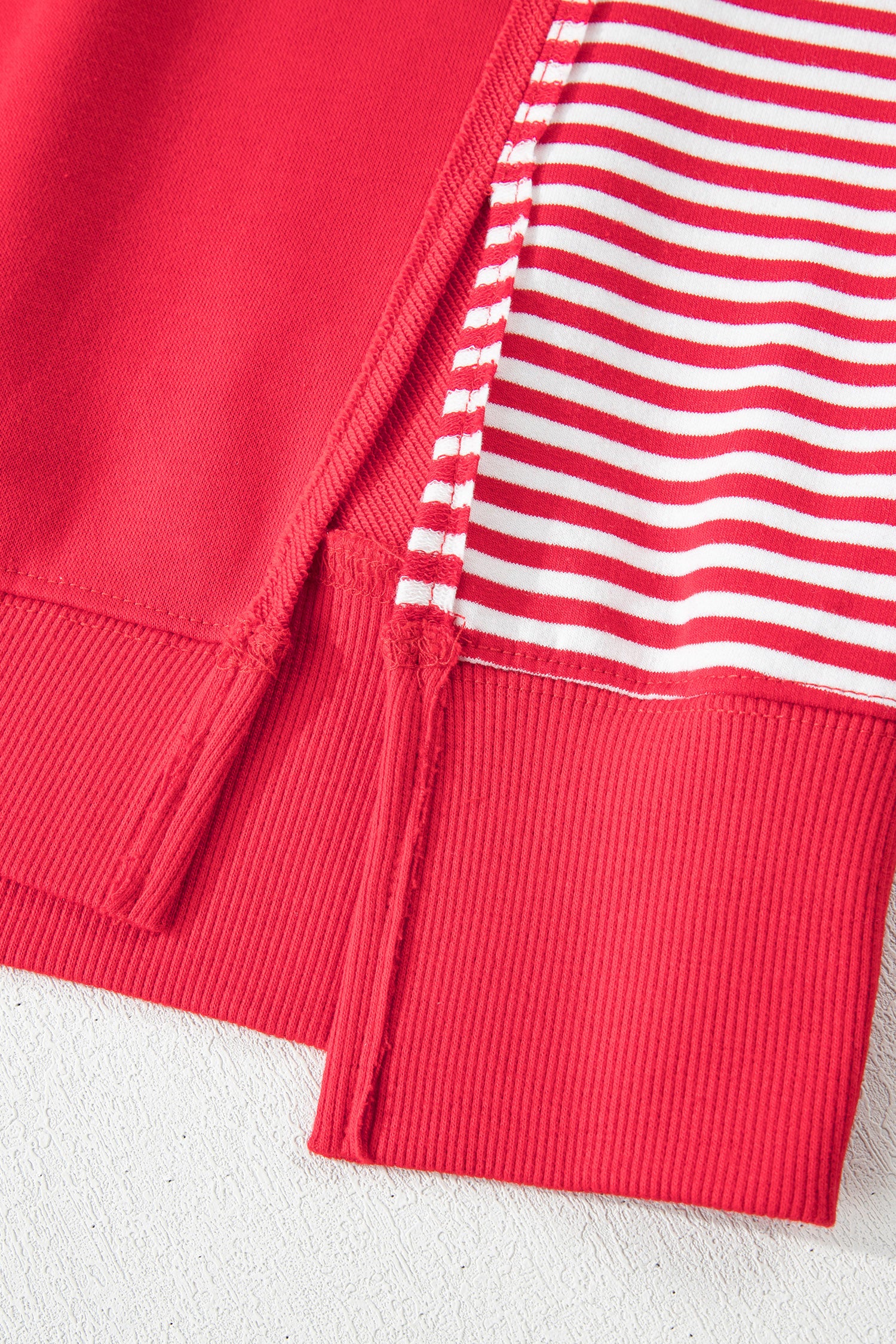 Racing Red Striped Patchwork Sleeve Colorblock Sweatshirt